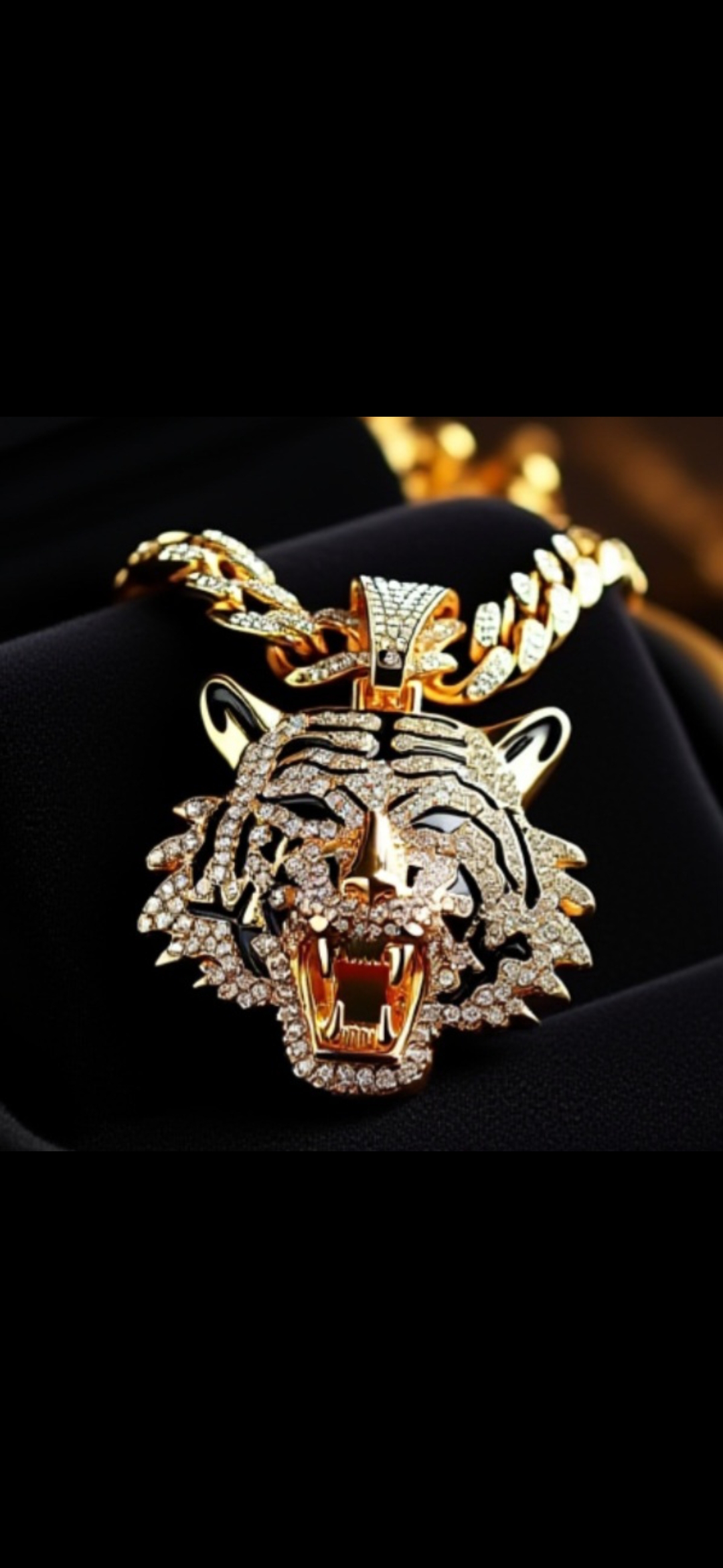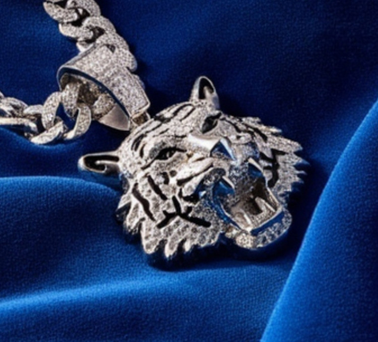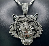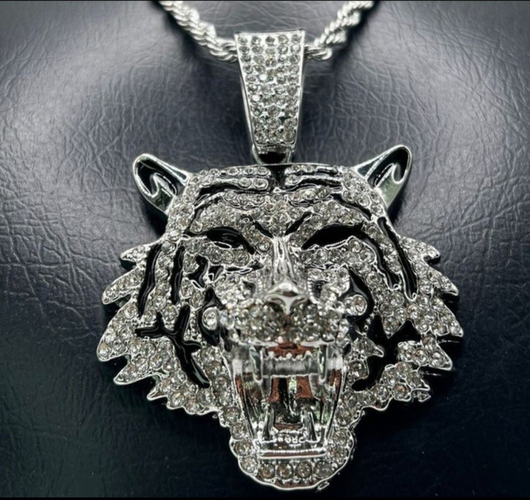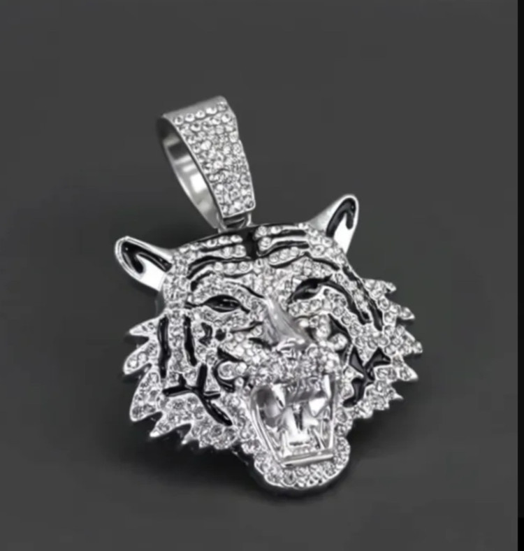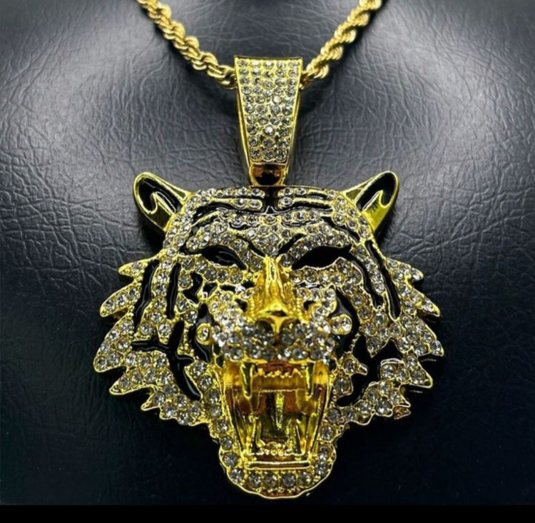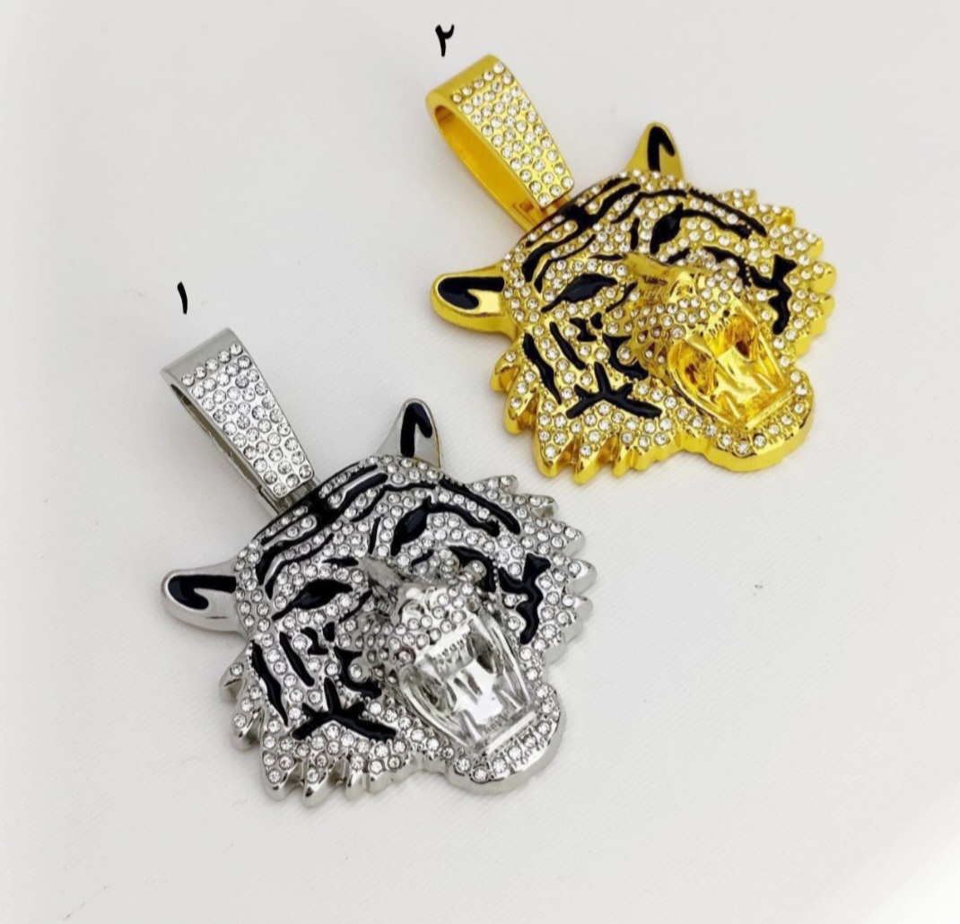پلاک فول نگین مدل ببر در رنگ های طلایی و نقره ای