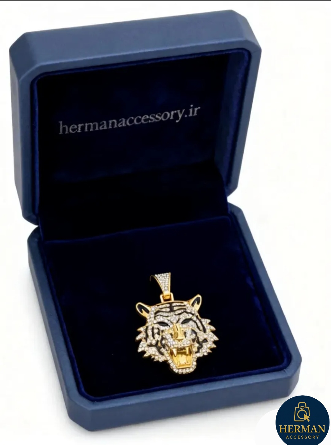 هرمان اکسسوری، همراه لحظههای ماندگار؛ انتخابی خاص برای سلیقههای خاص.ویژگیهای محصول | پلاک فول نگین مدل ببر