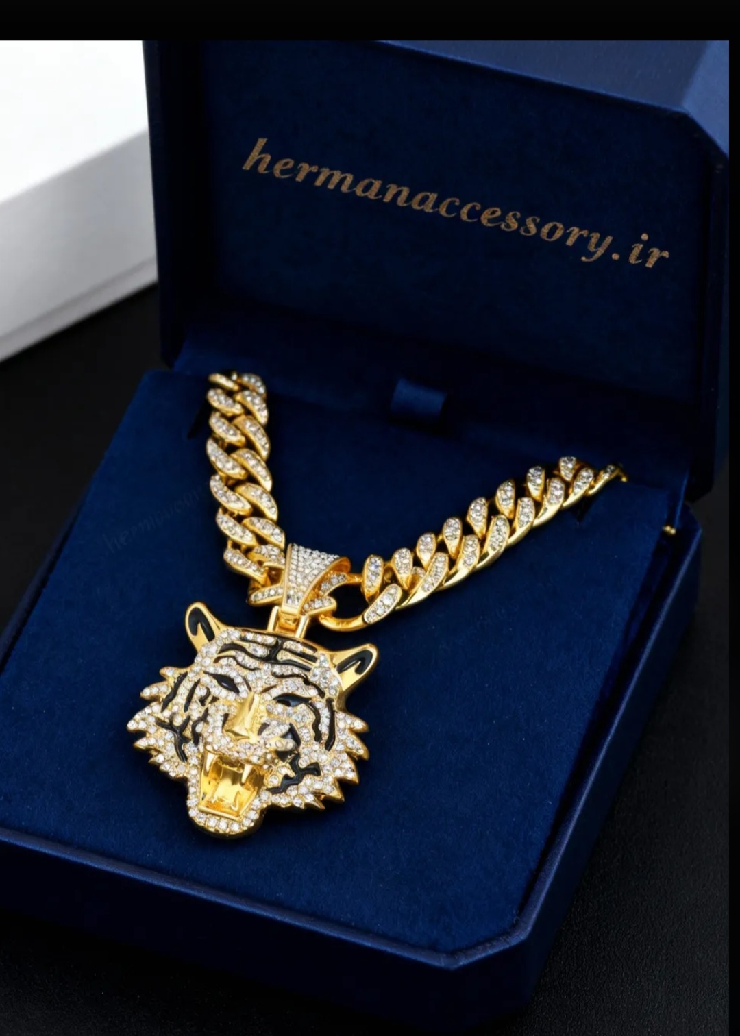پلاک فول نگین مدل ببر یکی از خاصترین و چشمنوازترین اکسسوریها در هرمان اکسسوری (hermanaccessory.ir) است که با طراحی قدرتمند و نمادین ببر، جلوهای لوکس و متفاوت به استایل شما میبخشد. این پلاک در دو رنگ جذاب طلایی و نقرهای عرضه میشود و با نگینهای درخشان و باکیفیت، در هر نوری جلوهای خیرهکننده دارد.