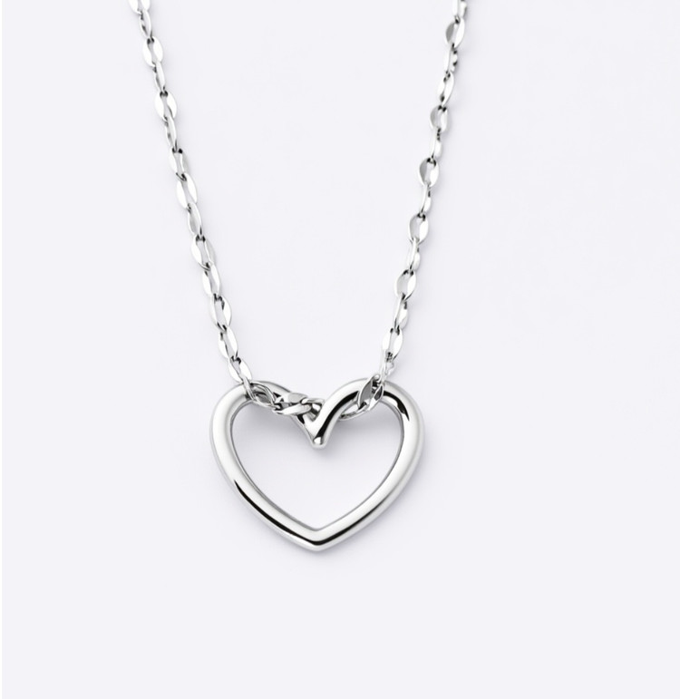 گردنبند قلب توخالی فول استیل همراه با زنجیر پولکی ۴۵ سانت