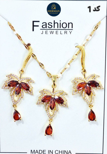 نیم ست طرح جواهری همراه با زنجیر استیل ،طلایی و نقره ای